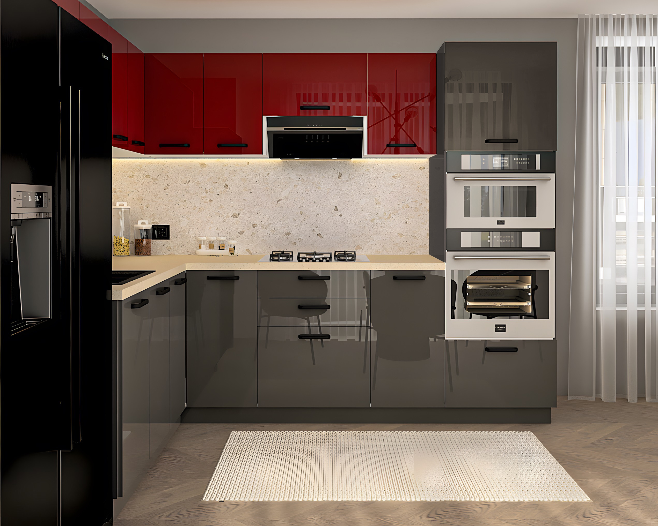 ● Front: MDF Lucios Rosu+Antracit