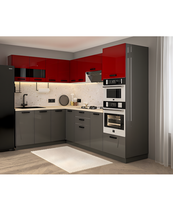 Bucatarie Daria colt V1, Rosu+Antracit