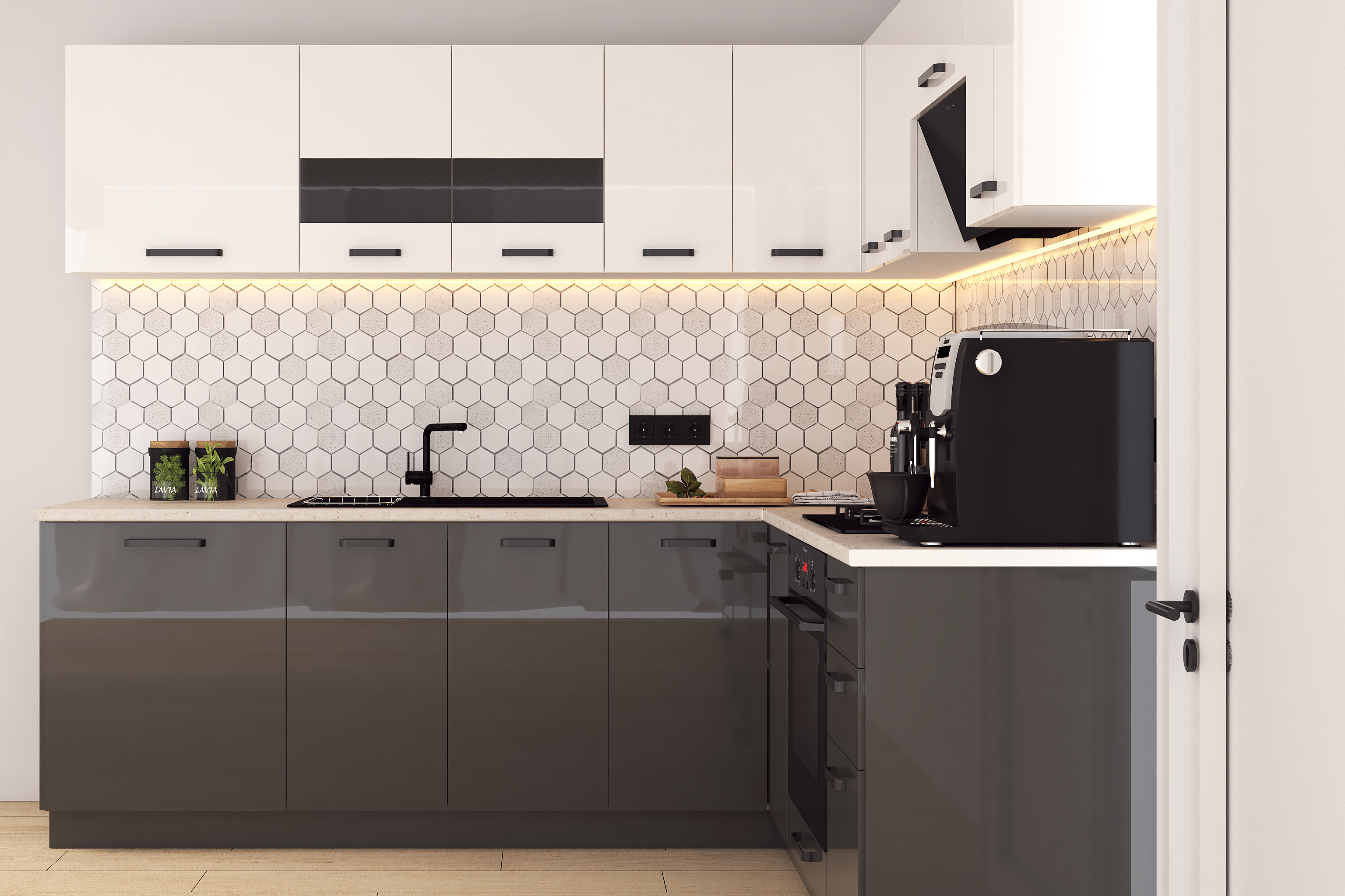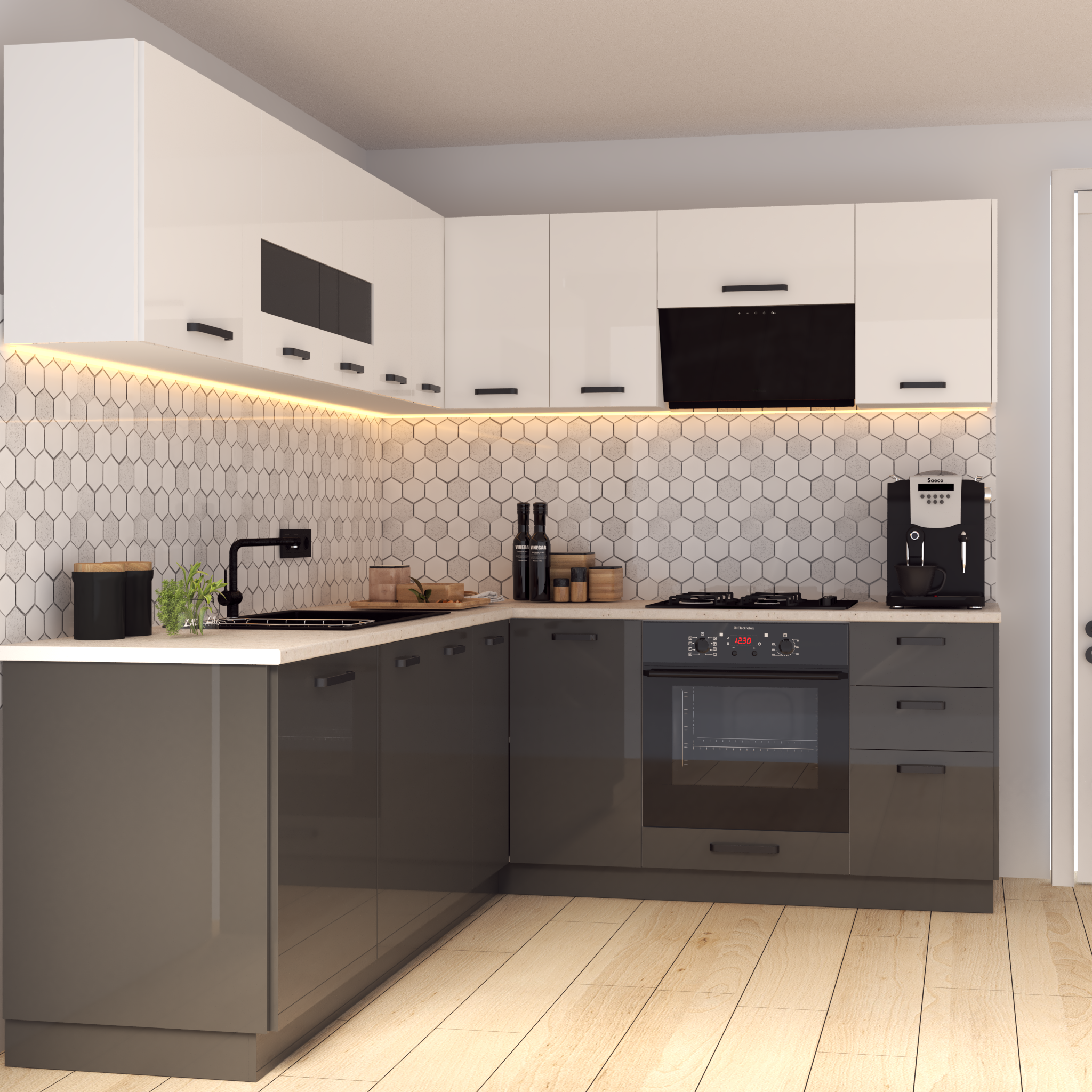 Bucatarie Daria colt V2, Alb+Antracit