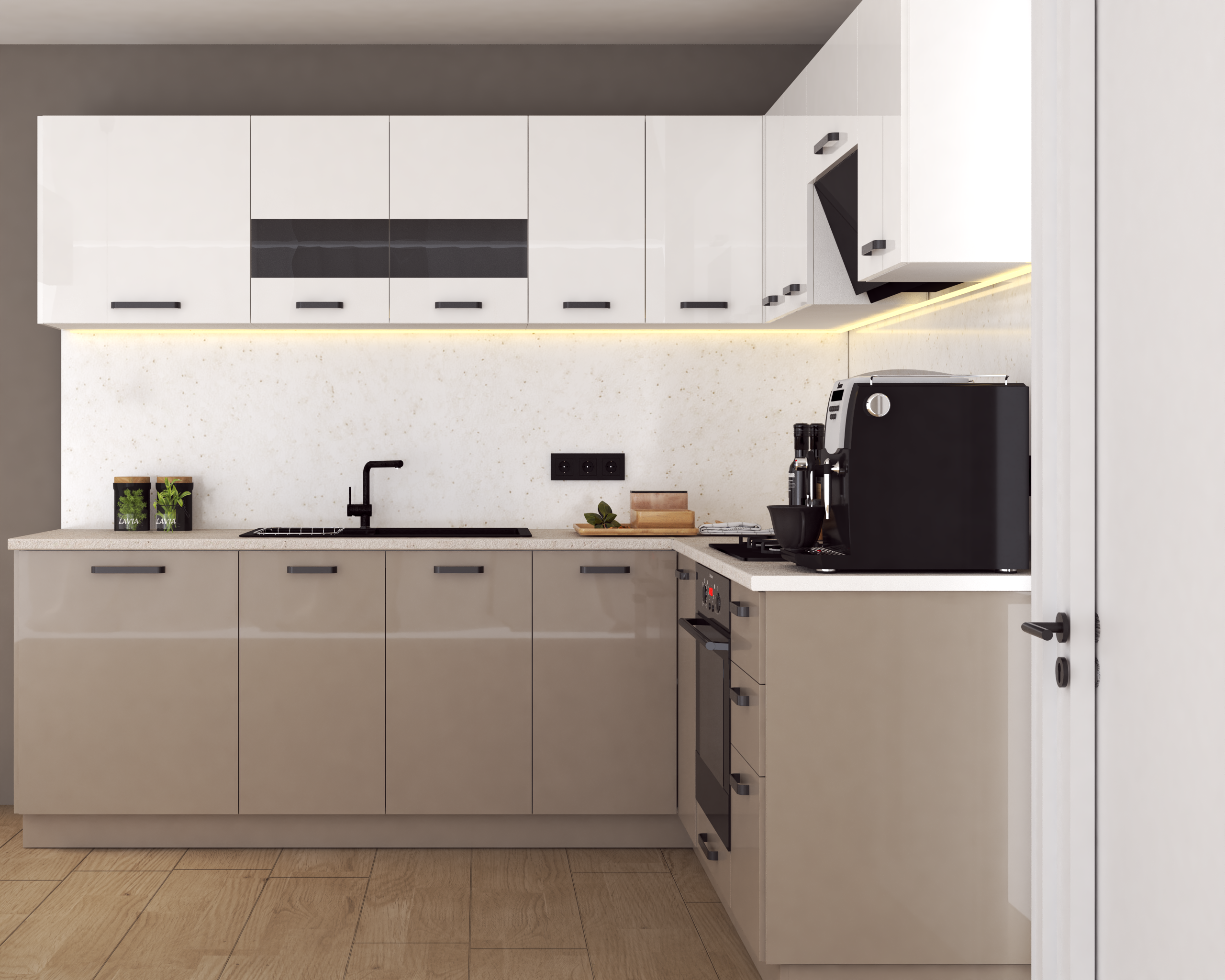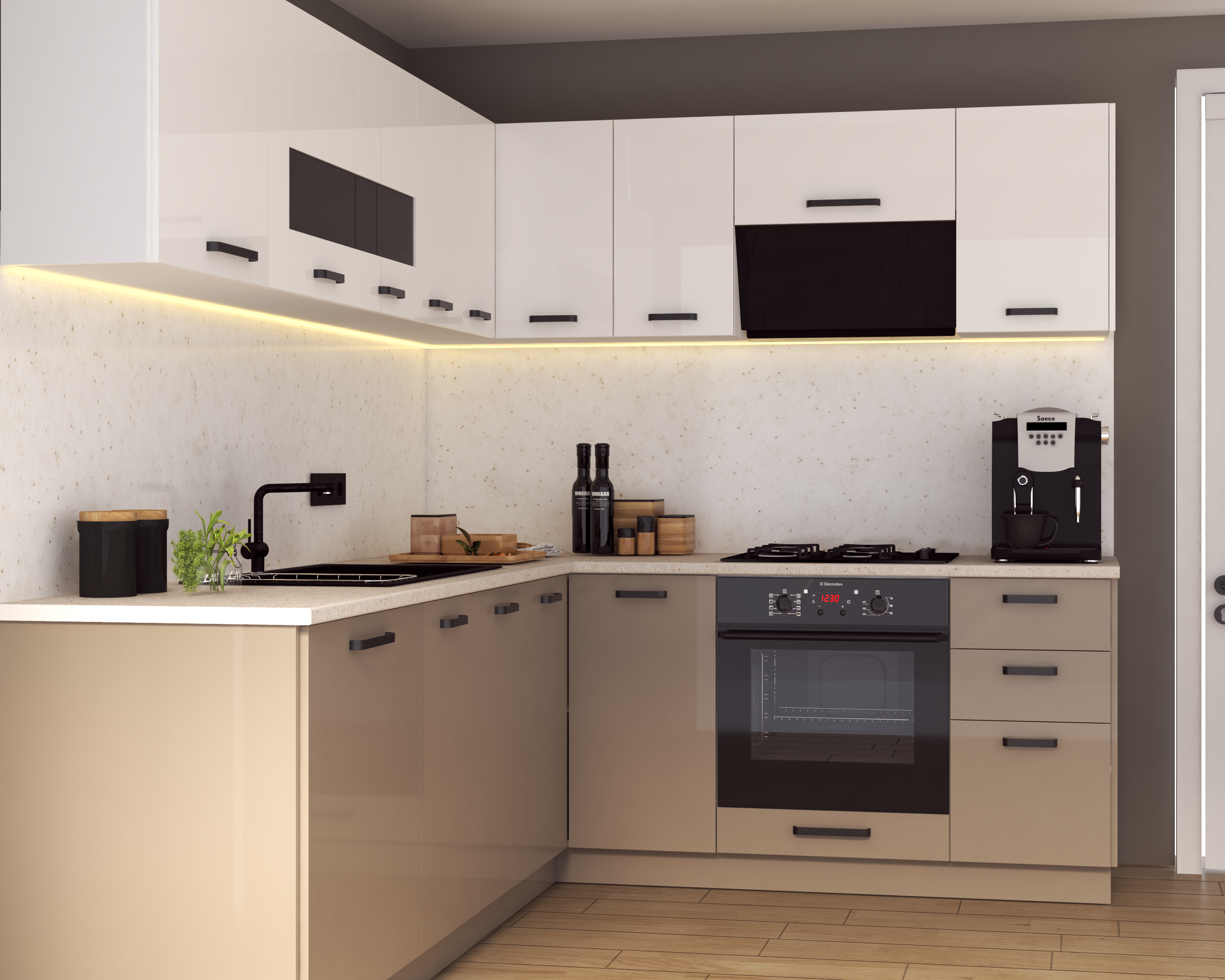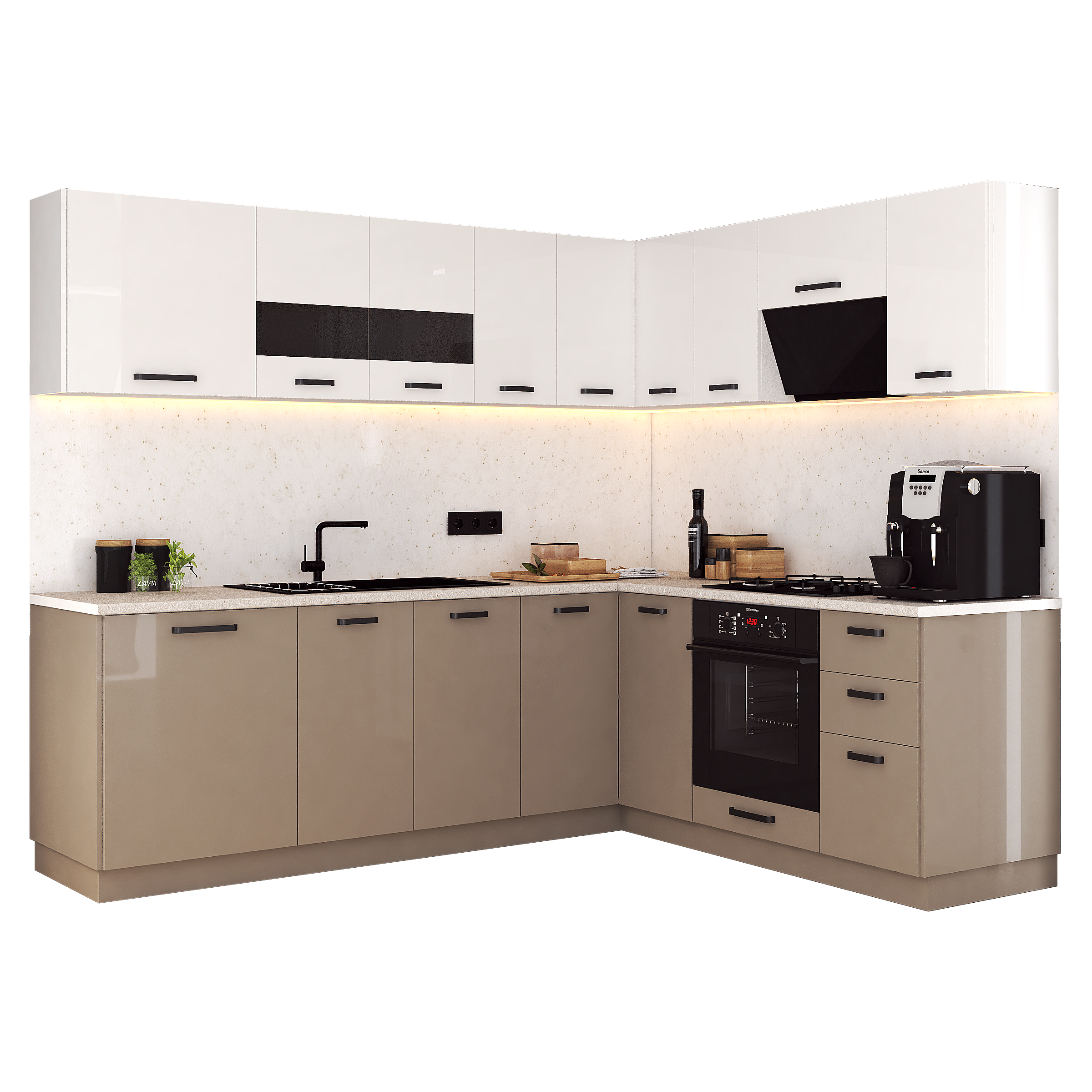 Bucatarie Daria colt V2, Alb+Cappuccino