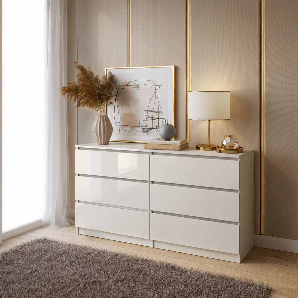 Comoda ARIA 6 sertare, 120x40x77cm, Alb