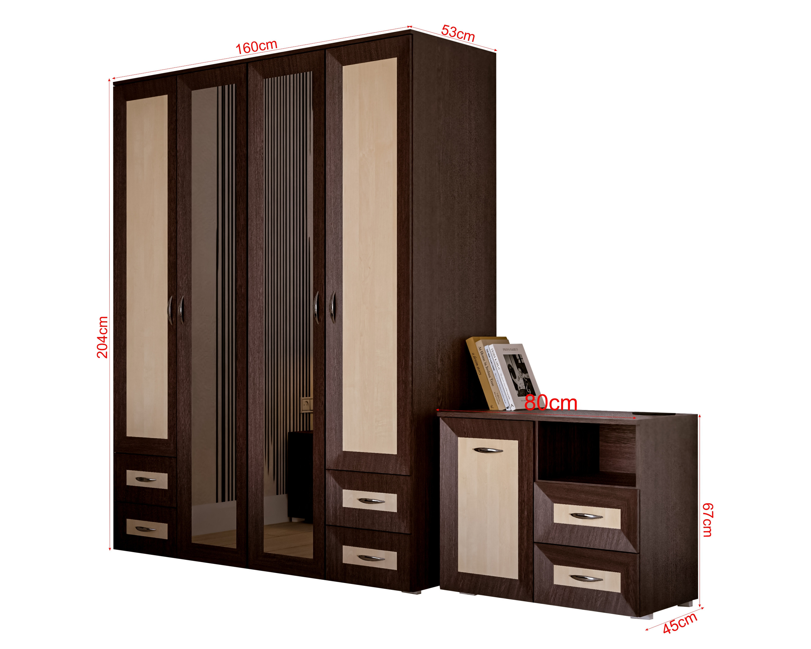 ● Dulap 4 Usi cu rafturi si bara haine ( x 1 buc ): Lungime 160 x Adancime 53 x Inaltime 204cm;
