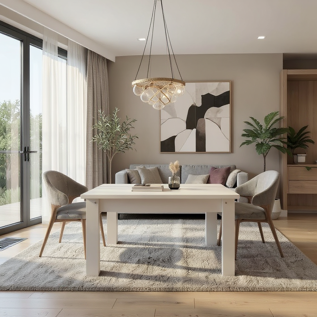 Masa este fixa, din PAL melaminat de nuanta ALB, are blatul dublat si colturile rotunjite.